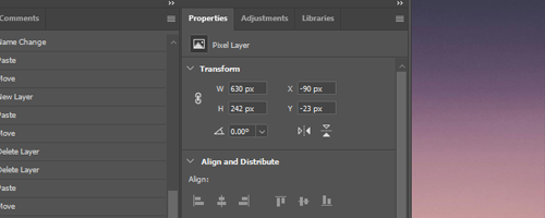 선택한 도구나 개체에 대한 다양한 설정을 조절할 수 있는 패널이다. 이미지 크기, 색상 조정, 문자 속성 등 다양한 기능을 포함한다.